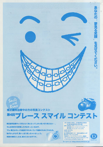 テーマは「夢見る笑顔」で、矯正治療中の方の写真コンテストを開催中です。矯正治療中の記念に、どうぞふるって参加し下さい。入賞するとビックなプレゼントがありますよ。 |